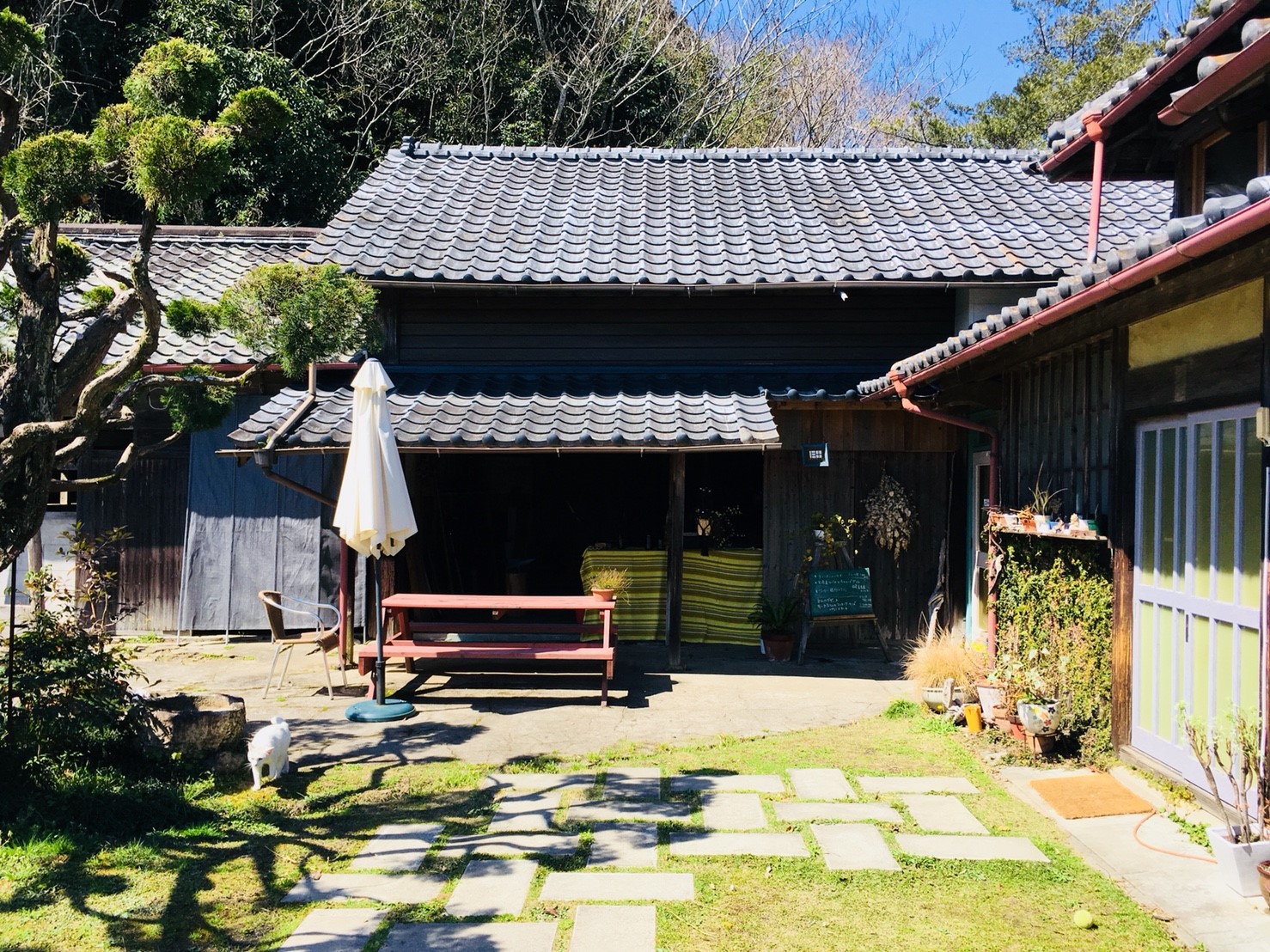 庭、植木、古民家、軒先のスケートボード、貝殻、小瓶などから「間違いない!!」と断言できるほど良い雰囲気を持ったお店。これは入店する前から100点間違いなし!
